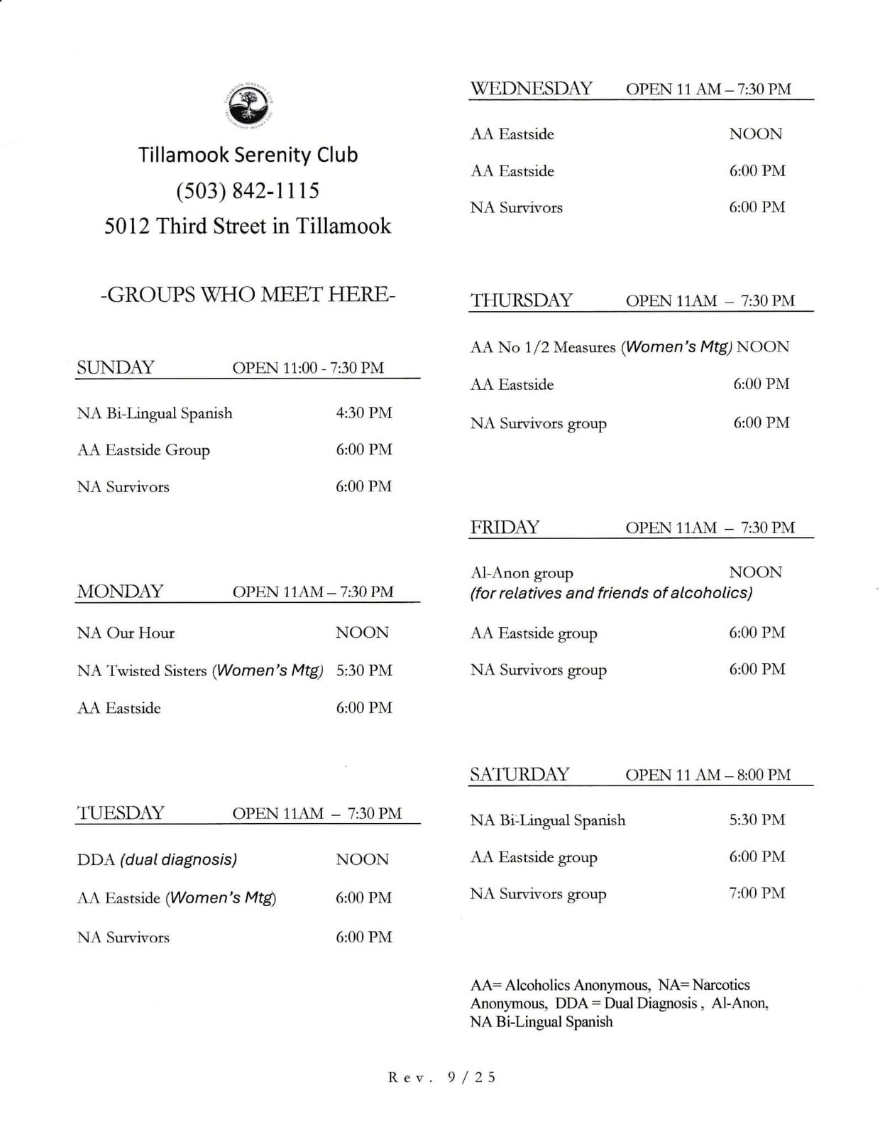 Copyright © 2025 Tillamook Serenity Club - All Rights Reserved.